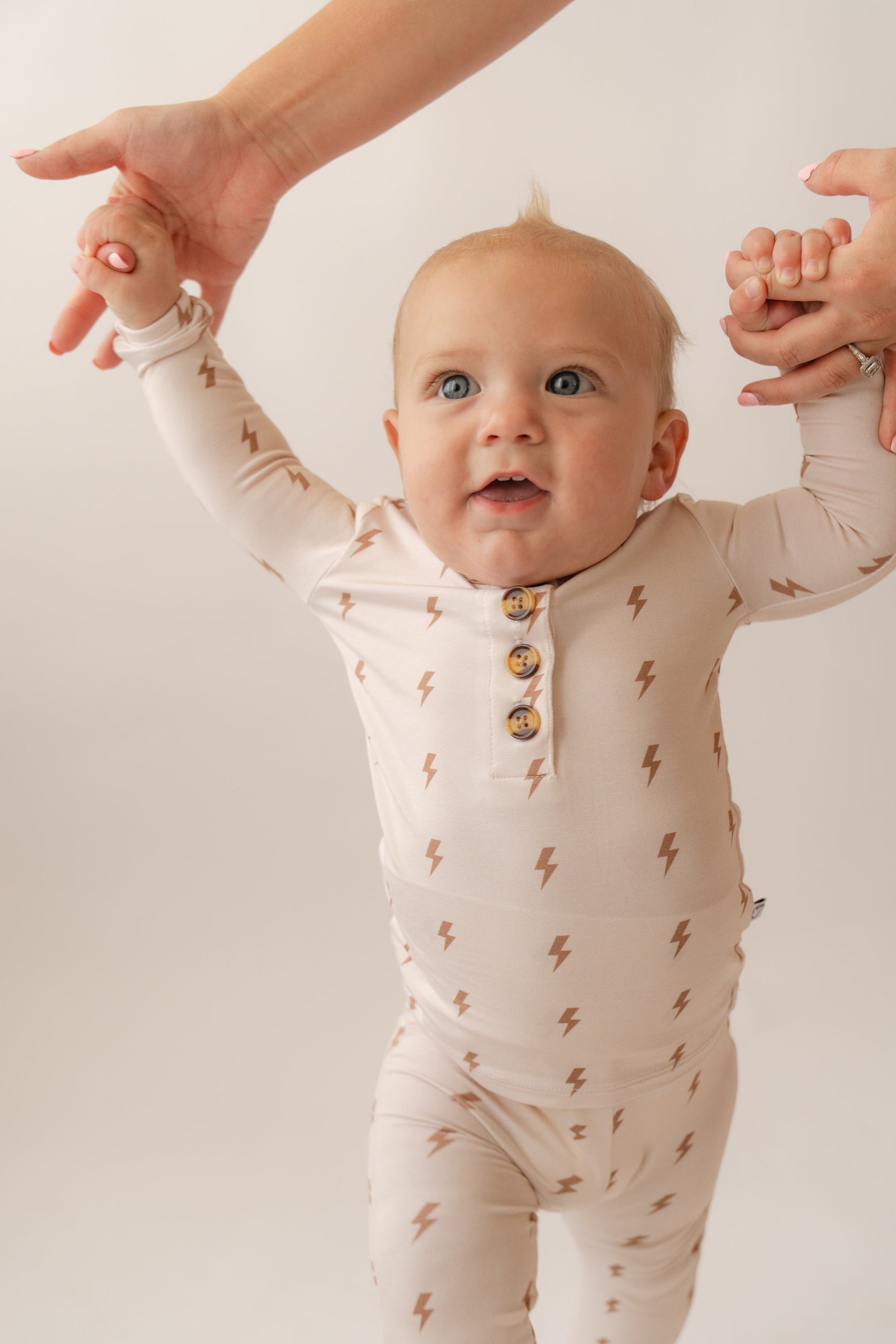 Lo bueno viene en pares, y nuestras camisetas y pantalones no son la excepción. Están confeccionadas con nuestro característico material suave y sedoso para un ajuste cómodo y elástico, con botones funcionales y cinturilla plegable para que crezcan (o para usar con cintura alta). Dile adiós a los calcetines que se quitan fácilmente con los calcetines integrados (solo en la talla de recién nacido) para mantener los deditos calentitos sin complicaciones. Mezcla y combina con todo, ¡increíblemente dulce!