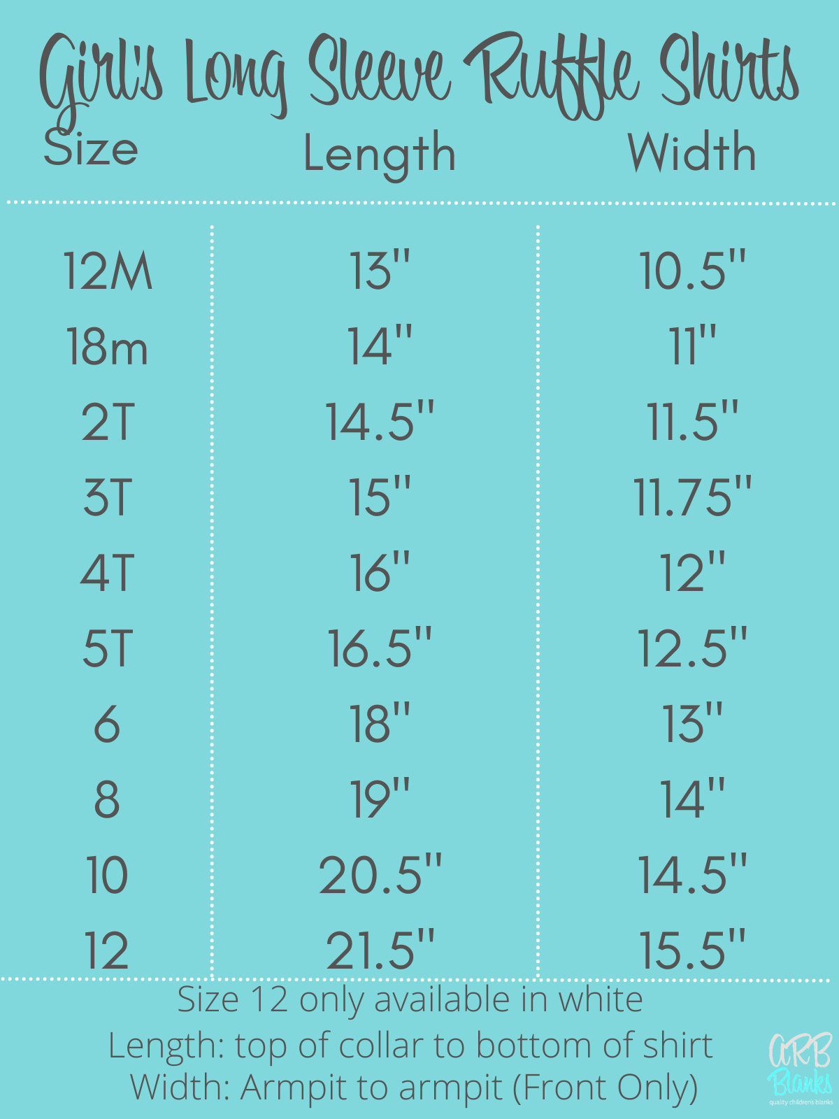 Chemise à volants à manches longues pour fille 12m-5T (également disponible en 6-10 Youth)