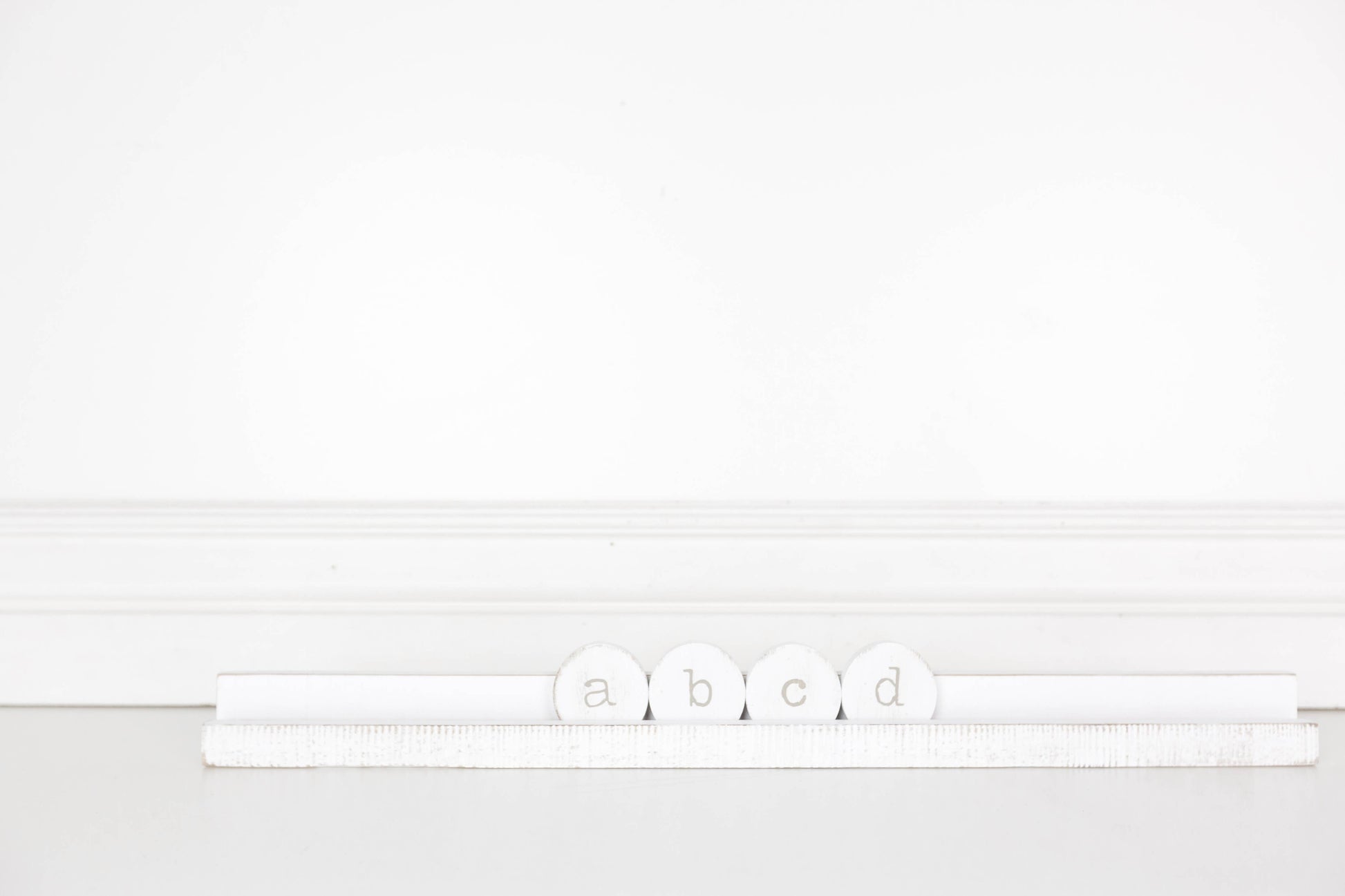 White wood ledgie shelf to make a sign with our letter tiles. Â 20x.75x1