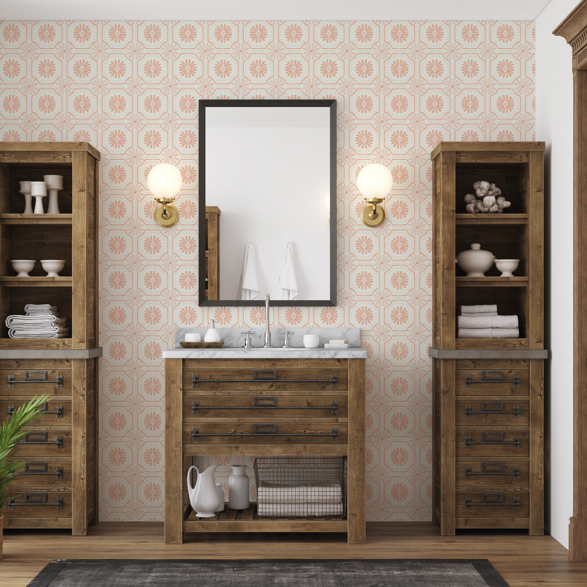 For the most accurate color reference, please refer to the individual square picture of the pattern, not the mock up or the lifestyle picture. Keep in mind the digital file and the physical wallpaper color may vary. Please purchase a sample to best see the colors in person.