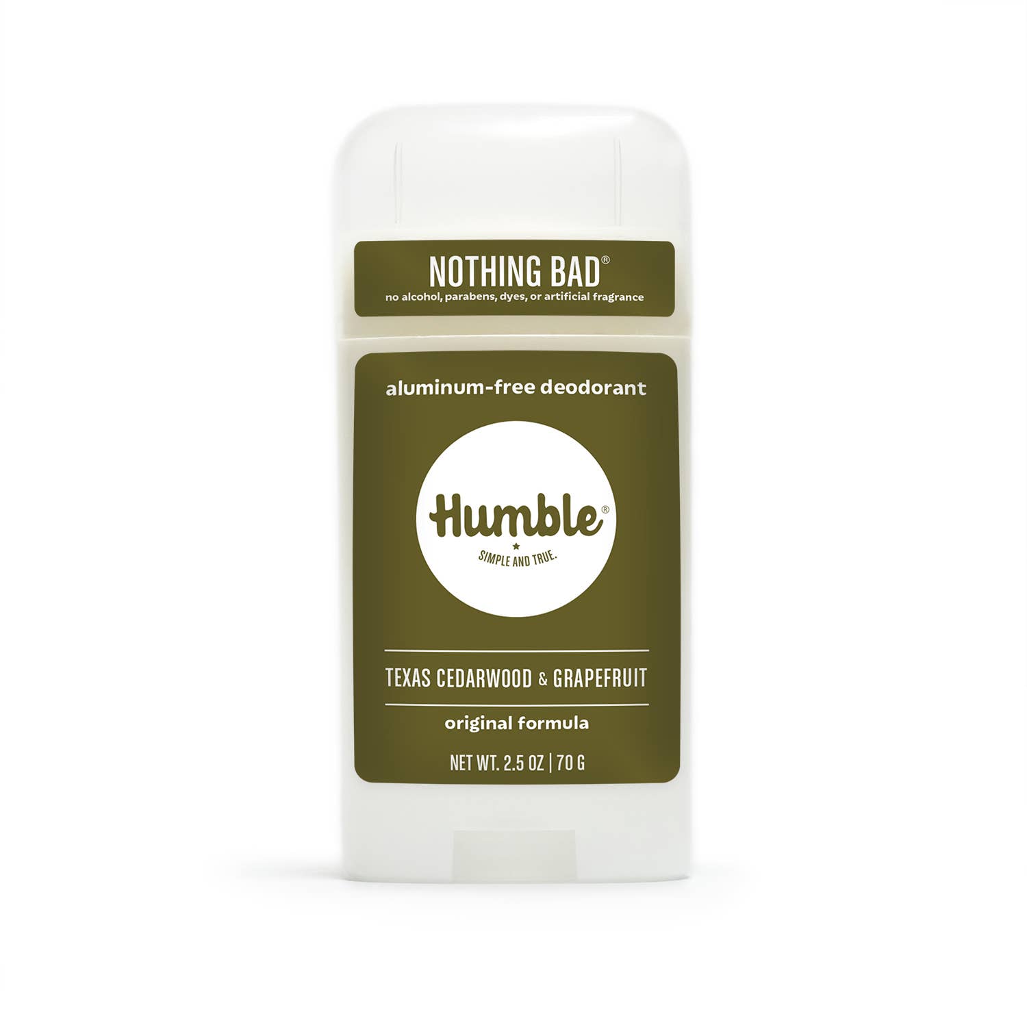 Humble Deodorant is formulated to absorb and neutralize body odor. A vegan friendly and baking-soda free formula, Humble Brands Deodorant has no aluminum, alcohol, dyes, parabens, sulfates or artificial fragrance.
